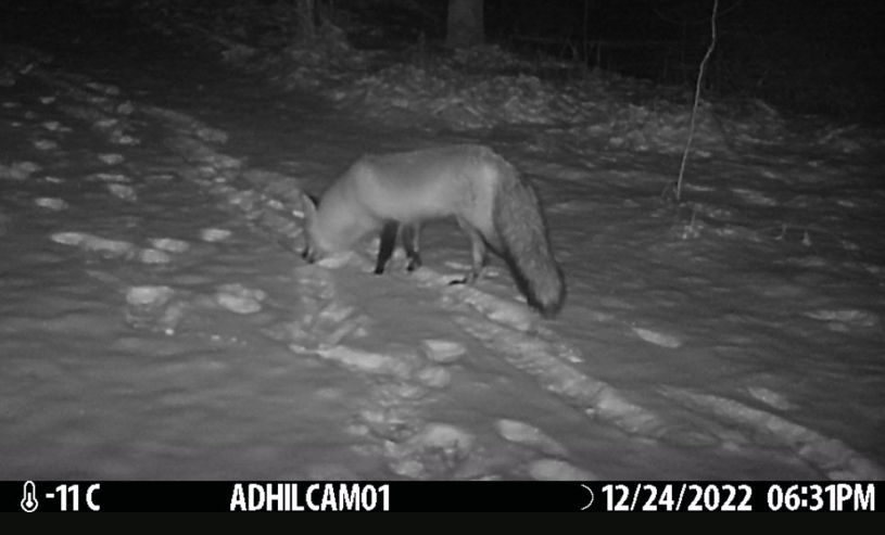 Videos taken on two different trailcams on what was a cold, windy Winter night; as evidenced by the audio.
